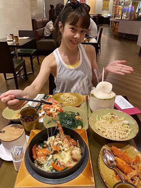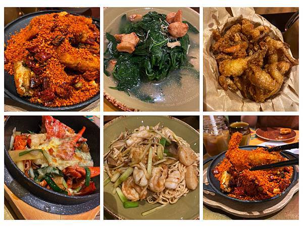 我們吃了XO醬海鮮悶意麵、芝士龍蝦焗飯、避風塘炒羅氏蝦、金沙軟殼蟹、瑤柱雞湯浸菠菜苗,