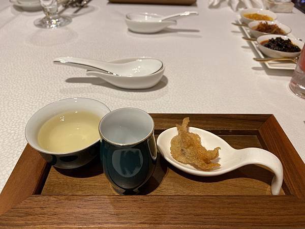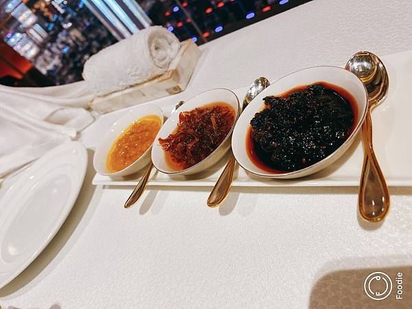上菜前服務生會先幫你斟茶跟送上特製醬料盤還有開胃小點,