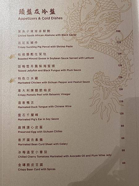 因為我訂到的是晚餐時段所以沒有吃到很有名的午間飲茶,